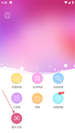 1、進入軟件主界面,點擊圖片分割,進入圖片分割設(shè)置頁面。