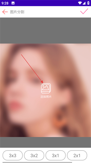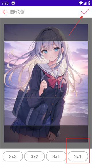 4、在分割頁面,選擇分割樣式后,點擊右上角對勾圖標(biāo),完成圖片分割。