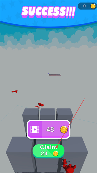 4、成功抵達終點完成關(guān)卡,點擊Claim按鈕,領(lǐng)取金幣等通關(guān)獎勵,也可選擇觀看視頻獲取雙倍獎勵。
