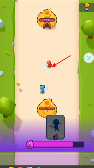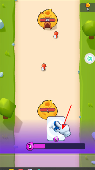 2、部署戰(zhàn)斗單位,按照箭頭指引,點(diǎn)擊下方的單位卡片,將己方戰(zhàn)斗單位精準(zhǔn)部署至戰(zhàn)場,為后續(xù)攻防奠定基礎(chǔ)。
