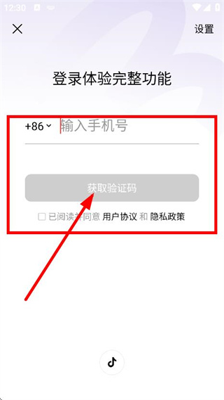 3、在手機號輸入頁面,輸入手機號后,點擊獲取驗證碼。