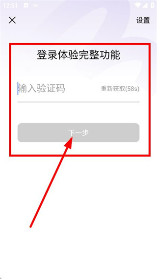 4、在驗證碼輸入頁面,輸入收到的驗證碼后,點擊下一步,完成登錄操作。