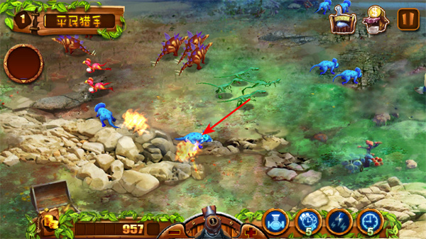 2、發(fā)起攻擊,向目標恐龍發(fā)起攻擊,造成傷害并消滅恐龍,同時來進行獲取分數(shù)。