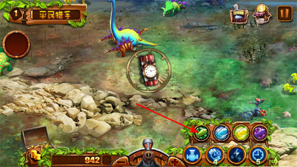 4、利用時間裝置,靠近場景中的時間裝置,借功能影響戰(zhàn)場局勢,減緩恐龍行動速度。