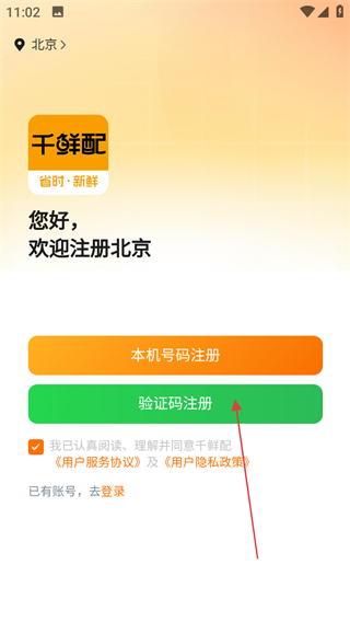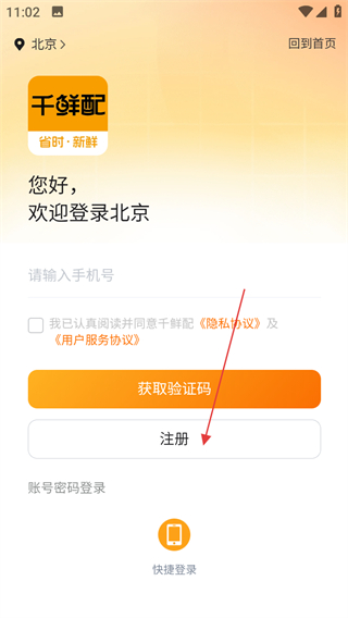 4、在注冊選擇頁面,點擊驗證碼注冊,進入驗證碼注冊頁面。