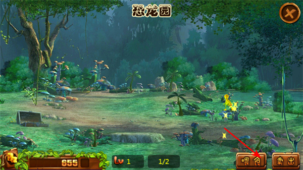 4、喂養(yǎng)恐龍,點(diǎn)擊喂食按鈕,為恐龍園中的恐龍?zhí)峁┦澄?,促進(jìn)恐龍成長(zhǎng),提升恐龍園的發(fā)展進(jìn)度。