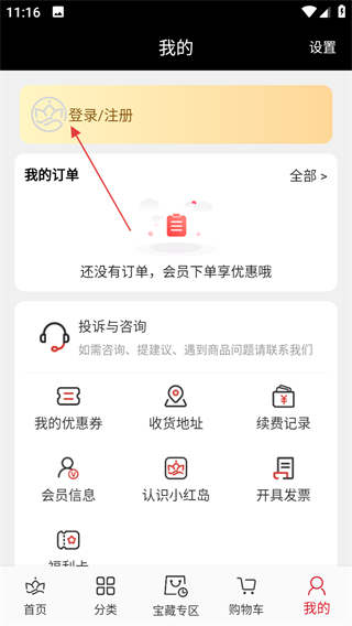 1、進(jìn)入小紅島首頁(yè),點(diǎn)擊底部我的,進(jìn)入個(gè)人頁(yè)面。