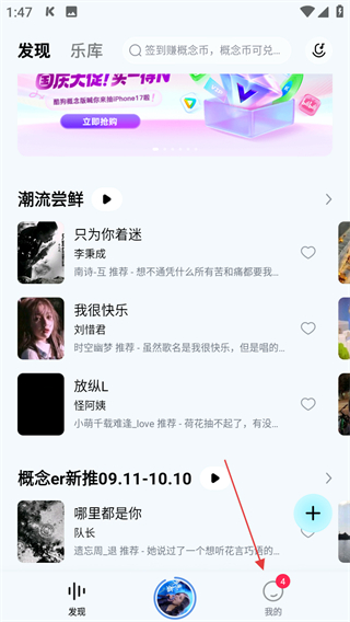 1、進入軟件發(fā)現(xiàn)頁面,點擊底部我的,進入個人頁面。