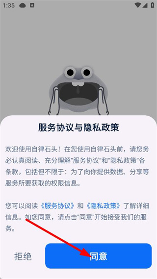 1、在服務(wù)協(xié)議與隱私政策彈窗中,點(diǎn)擊同意,進(jìn)入主界面。