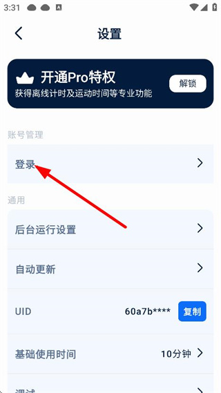3、在設(shè)置頁面,點(diǎn)擊登錄,進(jìn)入登錄方式選擇頁面。