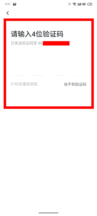 4、在請輸入4位驗證碼頁面,輸入收到的驗證碼,完成注冊登錄。