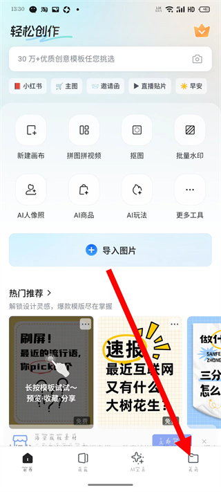 1、打開稿定設(shè)計APP,點擊底部導(dǎo)航欄的我的。