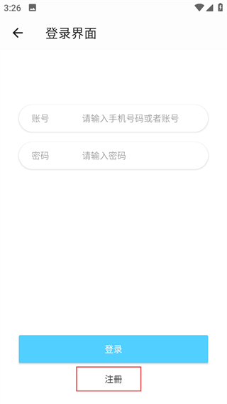 3、在登錄界面,若沒有賬號(hào),點(diǎn)擊注冊(cè),進(jìn)入注冊(cè)界面。