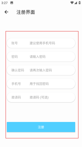 4、在注冊(cè)界面,依次輸入信息后,點(diǎn)擊注冊(cè),完成注冊(cè)操作。