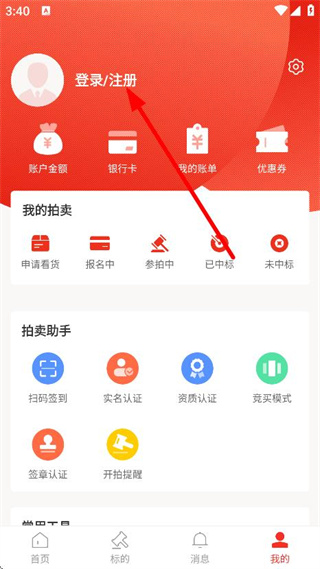 3、在我的頁面,點擊登錄注冊,進入登錄頁面。