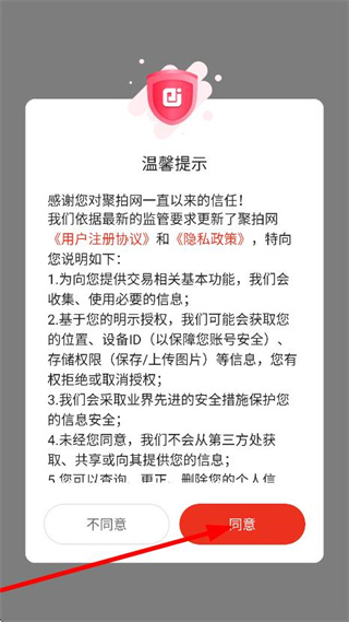 1、在溫馨提示彈窗中,點擊同意,進入聚拍網(wǎng)首頁。