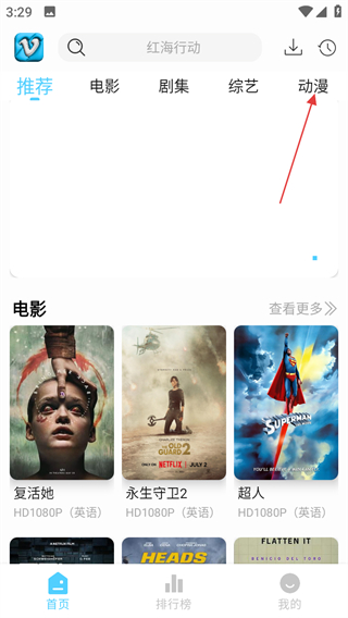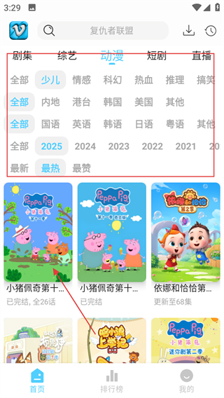 1、進入軟件首頁,點擊頂部動漫標簽,進入動漫分類頁面。