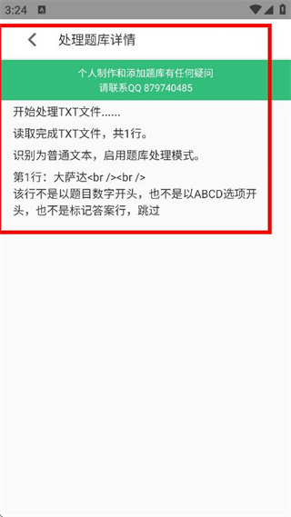 4、選擇文檔后,進(jìn)入處理題庫(kù)詳情頁(yè)面,可查看題庫(kù)處理的相關(guān)信息。