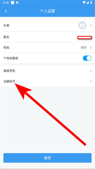 2、在個(gè)人設(shè)置頁(yè)面,點(diǎn)擊注銷賬號(hào)選項(xiàng)。
