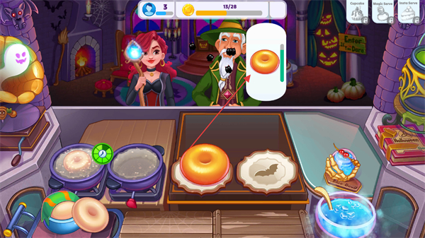 萬圣節(jié)模擬烹飪是一款以美食制作為核心的模擬經營作品,玩法與經典烹飪類作品相似,通過點擊操作快速為顧客提供美味食物,以此獲取豐厚利潤,包含上百個不同關卡,每個關卡都設有專屬任務目標,同時支持自由裝扮餐車,可嘗試多種萬圣節(jié)主題風格,讓烹飪過程兼具經營樂趣與節(jié)日氛圍。
