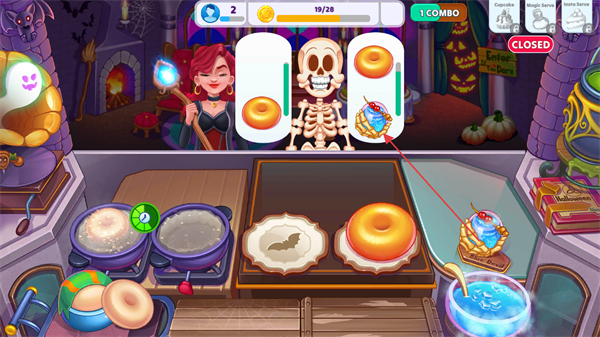 3、繼續(xù)關注新顧客需求,如出現2個甜甜圈的訂單,快速制作并交付,同時注意CLOSED標識避免超時。
