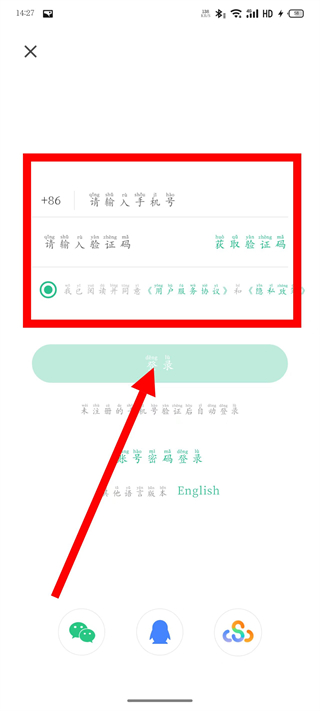 4、在登錄頁(yè)面,輸入手機(jī)號(hào)、驗(yàn)證碼,勾選后,點(diǎn)擊登錄,完成注冊(cè)。