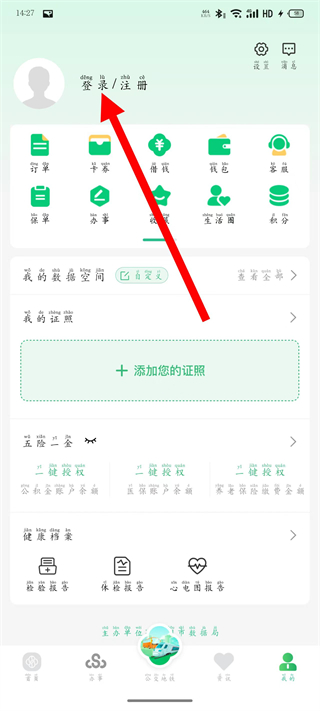 3、在我的頁(yè)面,點(diǎn)擊登錄注冊(cè)。