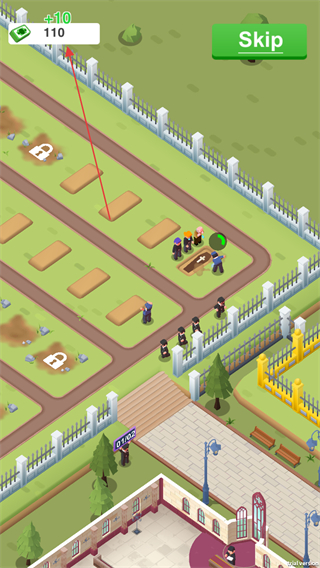 4、完成下葬任務后,獲取金錢獎勵如+10,金錢數(shù)值變?yōu)?10,繼續(xù)進行后續(xù)的殯葬業(yè)務,解鎖新區(qū)域和功能。