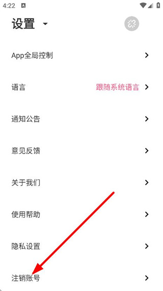 3、在設(shè)置頁(yè)面,點(diǎn)擊注銷(xiāo)賬號(hào),進(jìn)入注銷(xiāo)賬號(hào)說(shuō)明頁(yè)面。