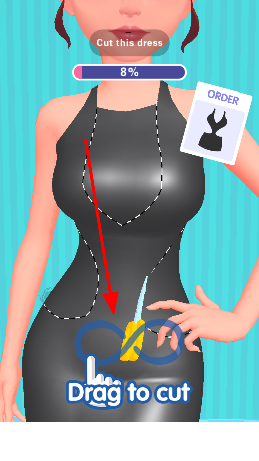 2、對(duì)服裝進(jìn)行剪裁時(shí),通過手指滑動(dòng)操作,按照設(shè)計(jì)要求精準(zhǔn)地剪裁服裝,塑造出想要的服裝款式。