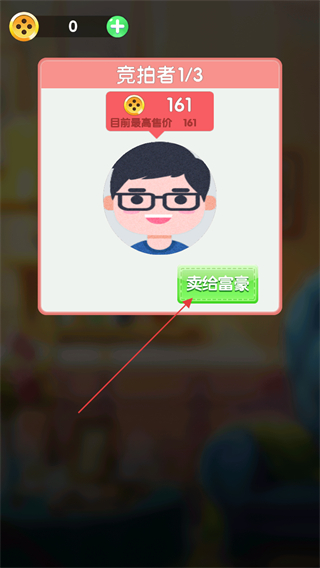 4、查看競(jìng)拍者給出的售價(jià)如161,點(diǎn)擊賣給富豪獲取收益。