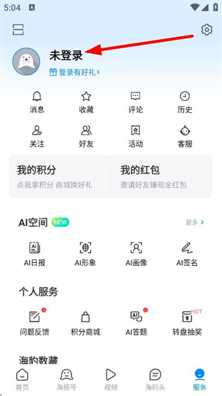 2、在軟件主界面,點擊未登錄,進入登錄相關(guān)頁面。