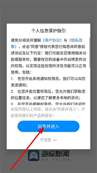 1、在個人信息保護指引彈窗中,點擊同意并進入,進入軟件。