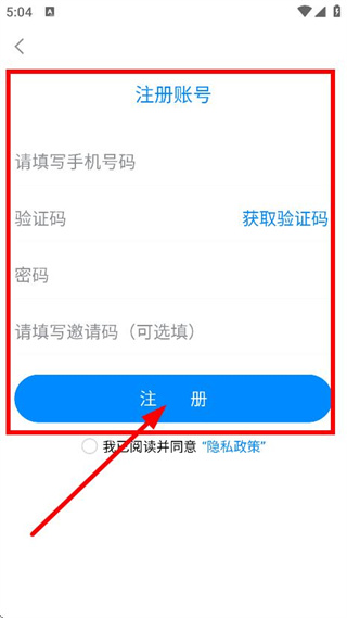 4、填寫手機號碼、驗證碼、密碼等信息,點擊注冊,完成賬號注冊。