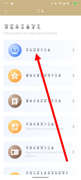3、在注冊頁面,選擇身份證用戶注冊方式。