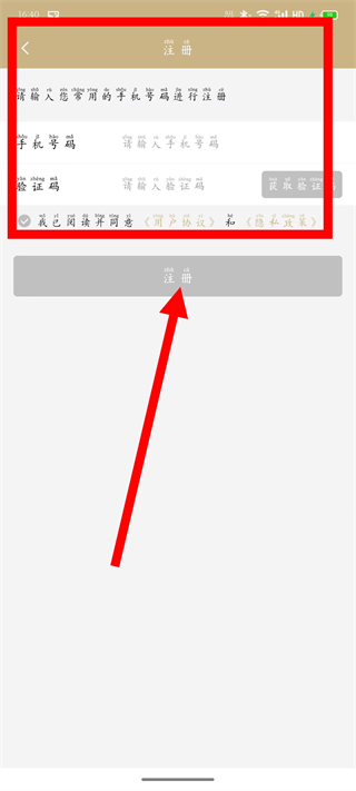 4、輸入常用手機號碼、驗證碼,勾選同意后,點擊注冊,完成注冊。