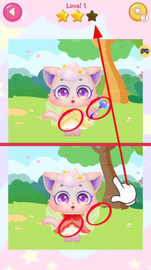 3、滿星勝利,成功找出所有不同之處后,就能獲得滿星評(píng)價(jià),取得勝利,收獲游戲成就感。