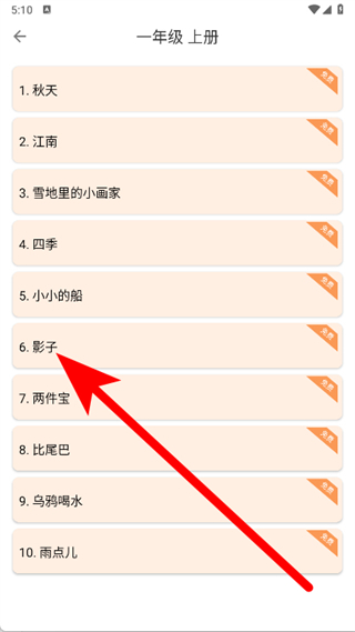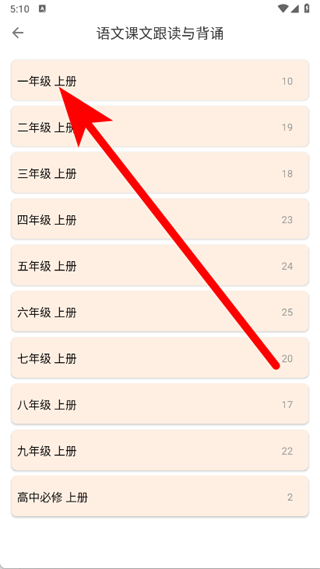 4、在一年級上冊列表中,點擊想要背誦的課文。
