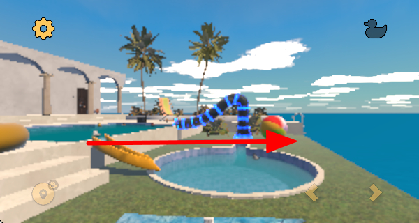 3、通過滑動(dòng)操作切換鏡頭,查看不同區(qū)域的場景,尋找隱藏的小黃鴨,擴(kuò)大探索范圍。
