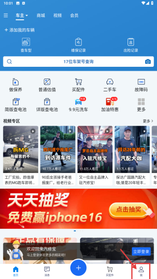1、打開汽車服務(wù)類應(yīng)用,點擊底部我的選項,進入個人中心頁面。