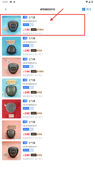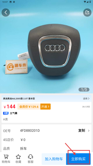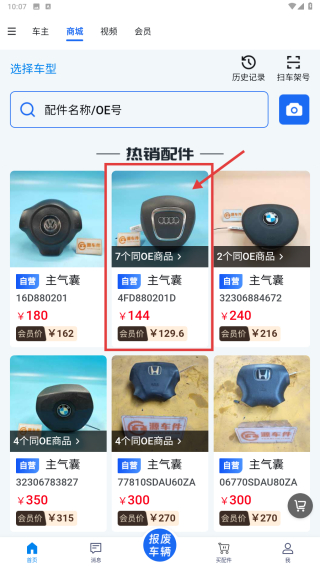 2、在商城熱銷(xiāo)配件區(qū),找到奧迪主氣囊商品,點(diǎn)擊進(jìn)入詳情頁(yè)。