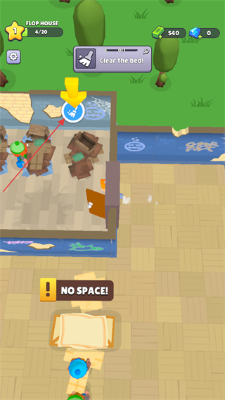 4、當(dāng)出現(xiàn)Cleartheweed提示,操控角色到指定區(qū)域,點(diǎn)擊清理雜草的按鈕,完成清理任務(wù),推進(jìn)游戲進(jìn)程。