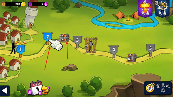 4、在世界地圖界面,可選擇不同的關(guān)卡進(jìn)行挑戰(zhàn),跟隨指引推進(jìn)游戲進(jìn)程,解鎖新的場(chǎng)景和任務(wù)。