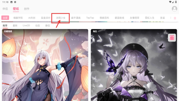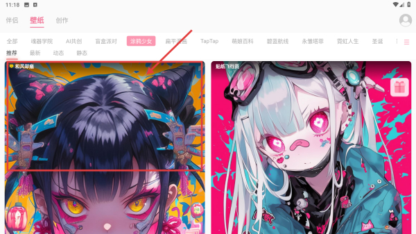 2、在壁紙分類頁面,點(diǎn)擊涂鴉少女標(biāo)簽,篩選涂鴉風(fēng)格壁紙。