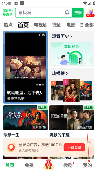 1、進入愛奇藝首頁,點擊底部我的,進入個人頁面。