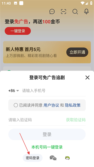 3、在登錄窗口,點擊密碼登錄,切換到密碼登錄界面。