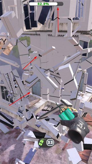 4、持續(xù)使用爆破道具,讓建筑進(jìn)一步坍塌,直至達(dá)到較高的爆破完成度,體驗建筑逐漸被破壞的過程。