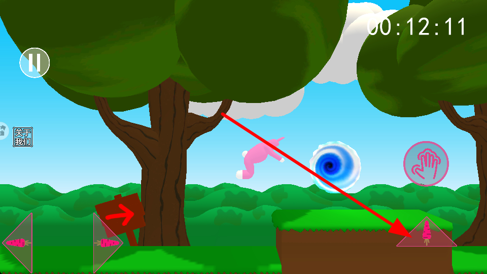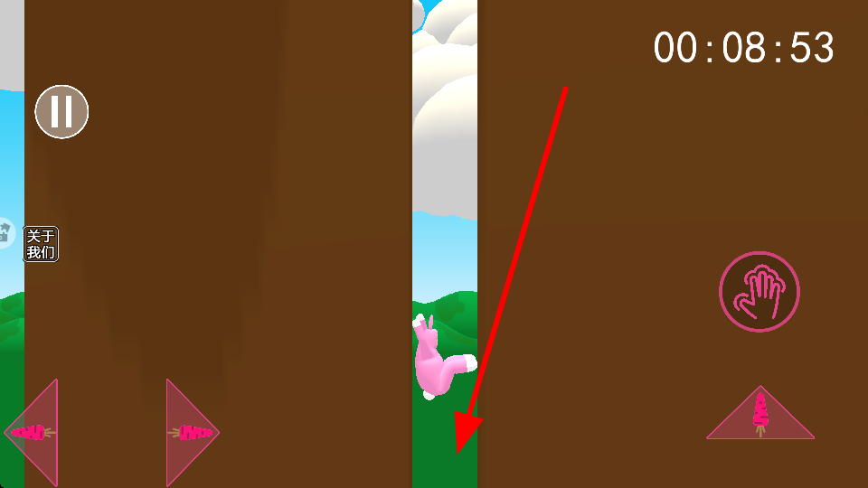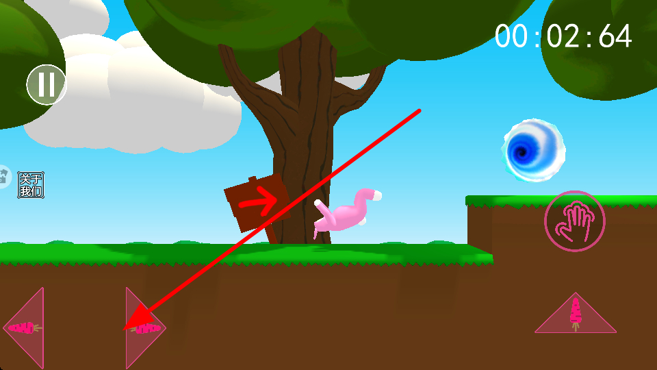 1、首先點(diǎn)擊左右方向按鈕,靈活操控粉色萌兔在森林場(chǎng)景里移動(dòng),朝著傳送門方向前進(jìn)。