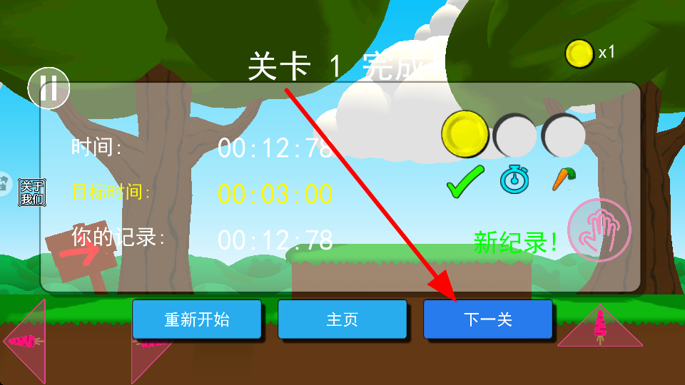 4、成功操控萌兔到達(dá)傳送門,就能順利通關(guān),之后可選擇進(jìn)入下一關(guān),開啟新的挑戰(zhàn)。