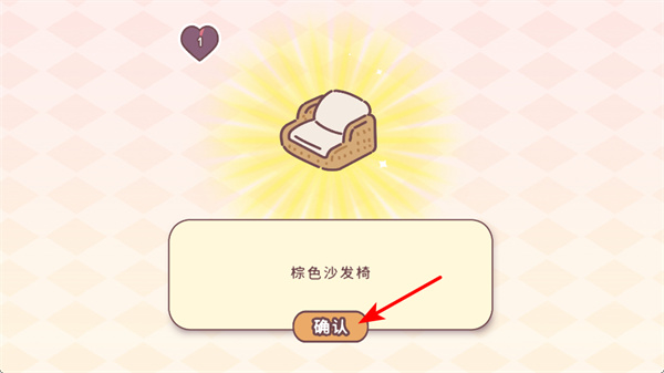 3、獲得新家具如棕色沙發(fā)椅后,點擊確認(rèn)按鈕,確認(rèn)獲取該家具,加入可布置的家具列表。